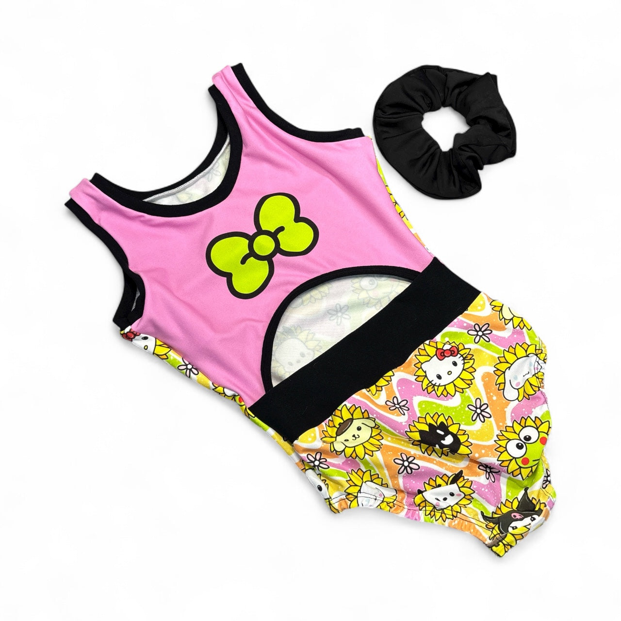 Sublimated Sleeveless leotard with contrast bands, tank and open back design. All our leotards come with a best matching scrunchie. Default Fabric Type: Regular Spandex.